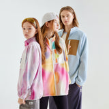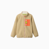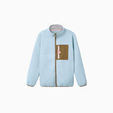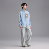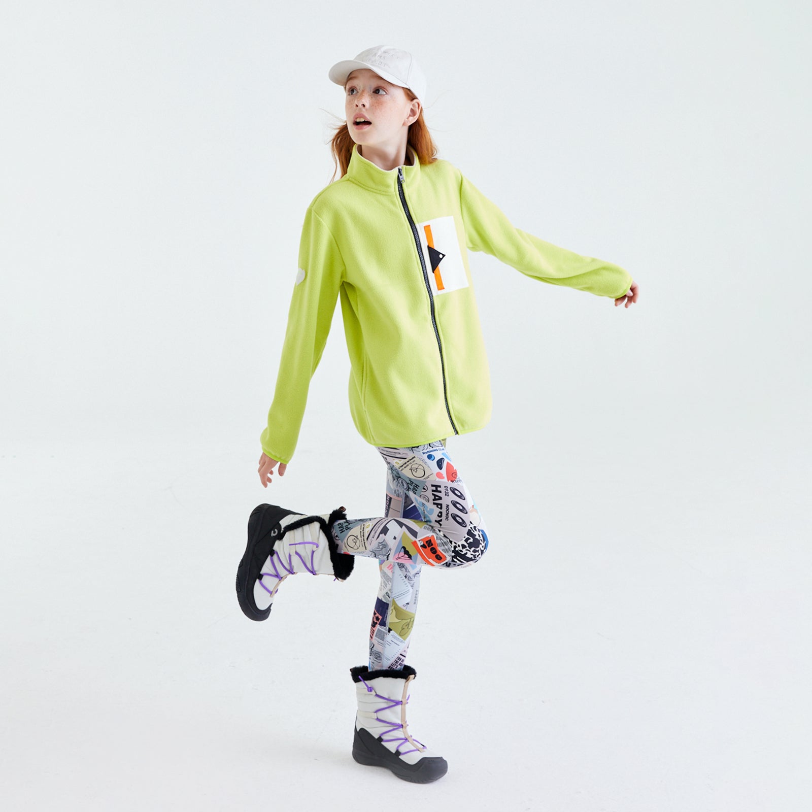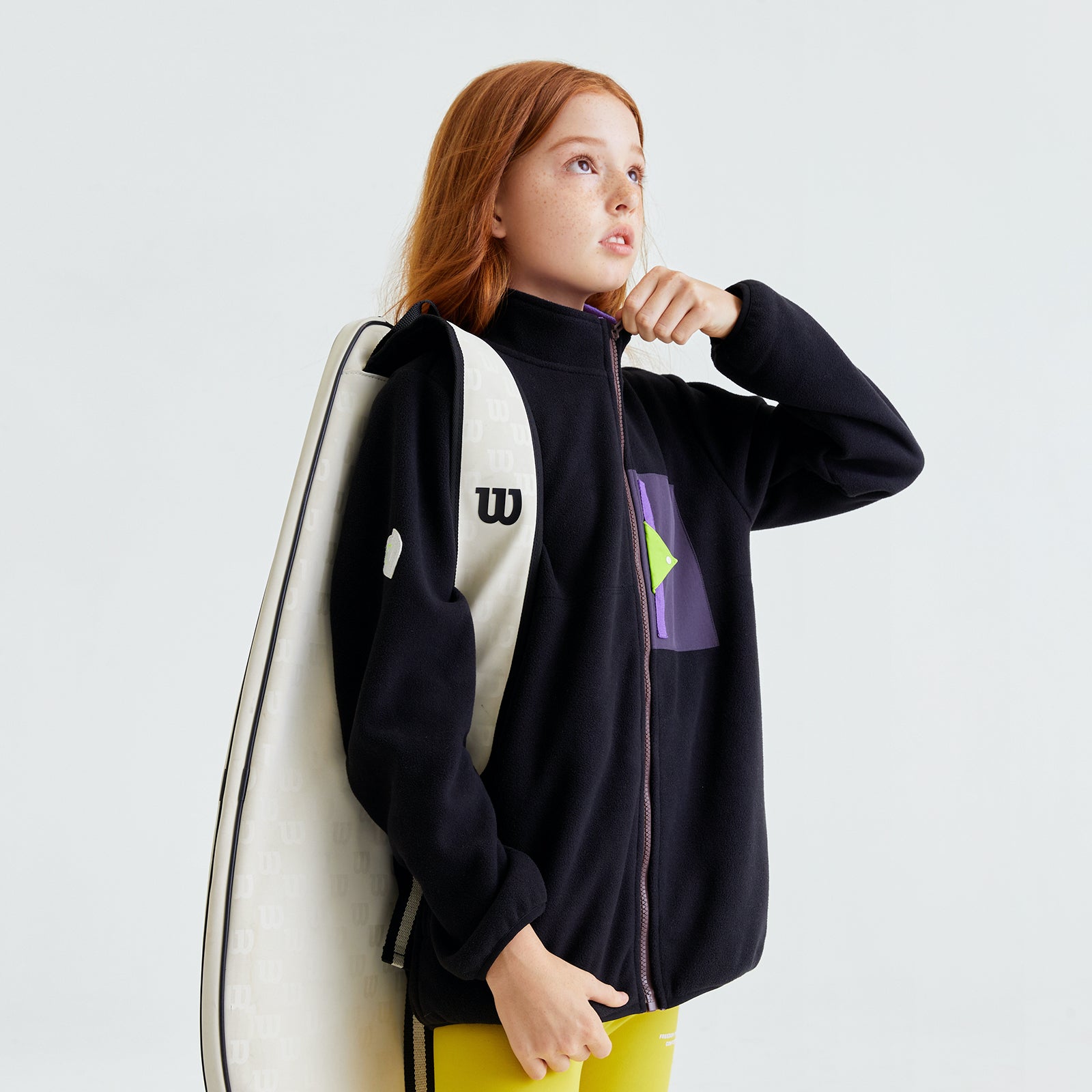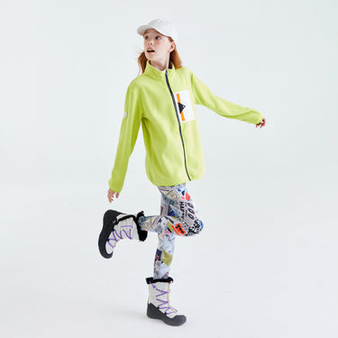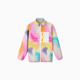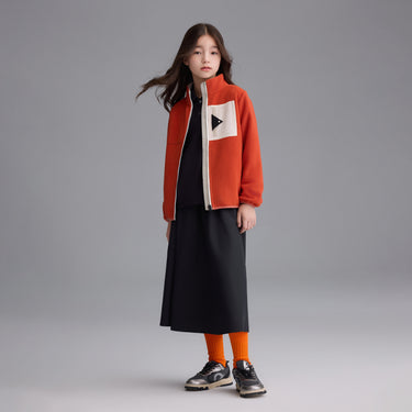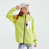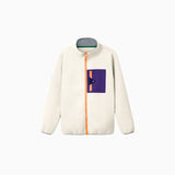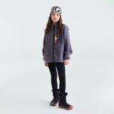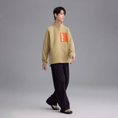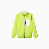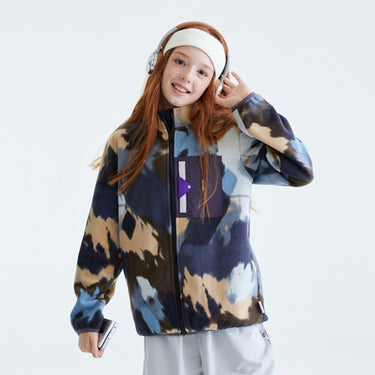 カラフルなNOC-Cloudのサーマルフリースジャケットを着た2人のモデル2人 軽量で保温性や静電気防止機能を備えたNOC-Cloudの素材の説明 280gの軽量素材と75Dの細糸で織られた柔らかいフリース生地のアップ 静電気防止機能付きの迷彩グレーカラージャケットを着たモデル 子供用保護ジッパーやカラーブロックデザインの胸ポケットなどのNOC-Cloudジャケットのディテール紹介 子供用と大人用のシルエットやデザインの違いを示した比較画像 家族やパートナーとお揃いで楽しめるリンクコーデの着用例