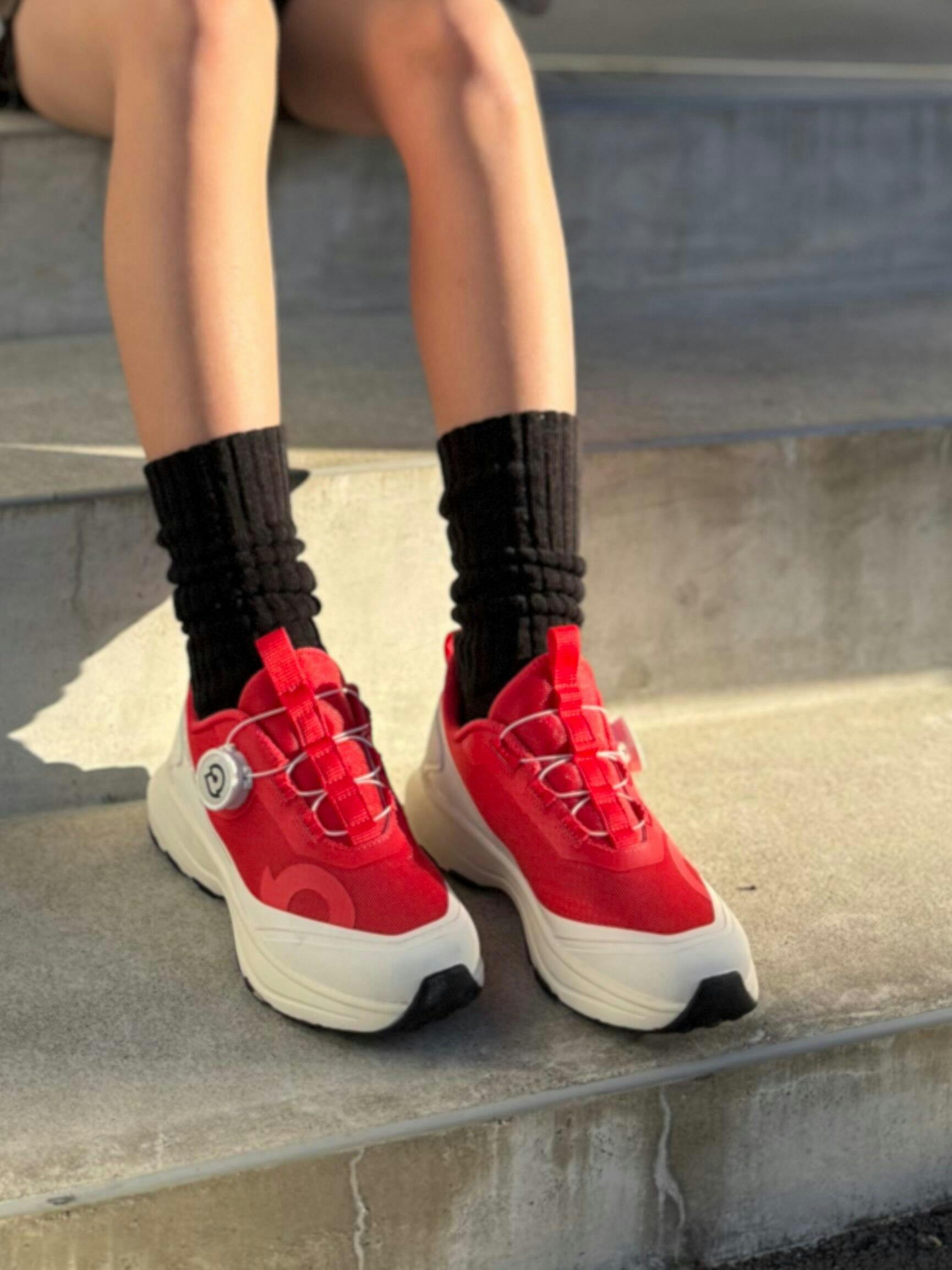 ダイヤル式って子供好きですよね。ワンタッチで自分のいい感じに締めることができて軽量なので楽ちんです。通気性あるのもほんと有難いです。レッド&ホワイト目立つしホワイトがアイボリーの優しい白なのが個人的に好きです。サイズ展開も広いのでみんなでお揃いできまーす!