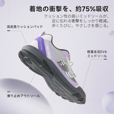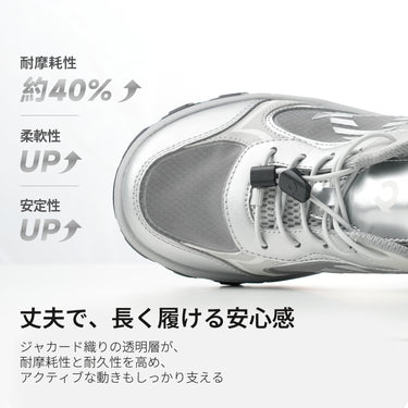 ランニング、縄跳び、あらゆる専門トレーニングから日常の通勤通学まで、多様なシーンでご活用可能。3Dジャガード素材が、汗をかきやすいお子様の足を常にドライに保ち、ジャカード織りの透明層が遊び盛りの動きに耐えるタフさを実現し、高反発ミッドソールが着地の衝撃を約75%吸収。アクティブな動きにもしっかりと対応し、滑りにくいアウトソールがあらゆる路面での動作をサポート。