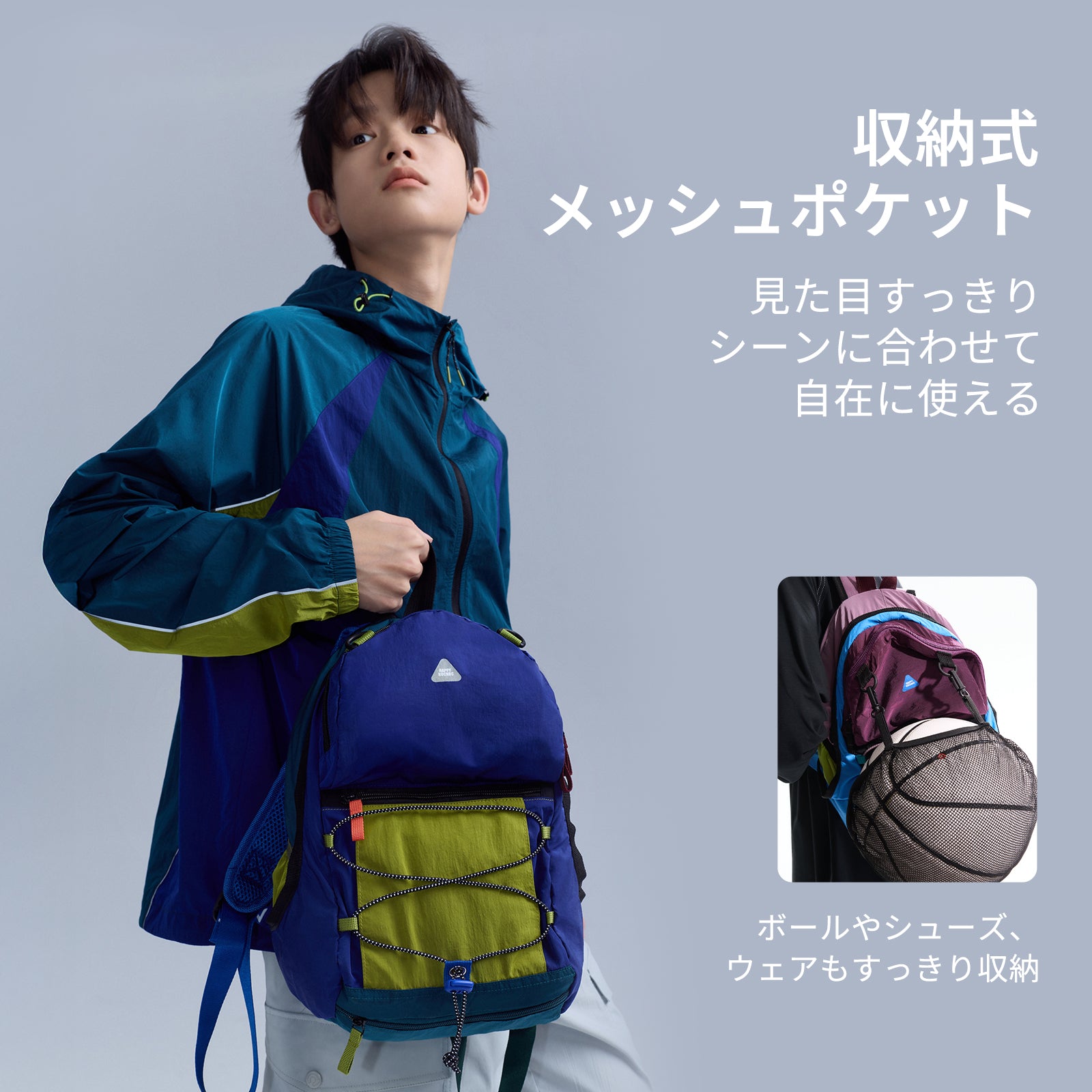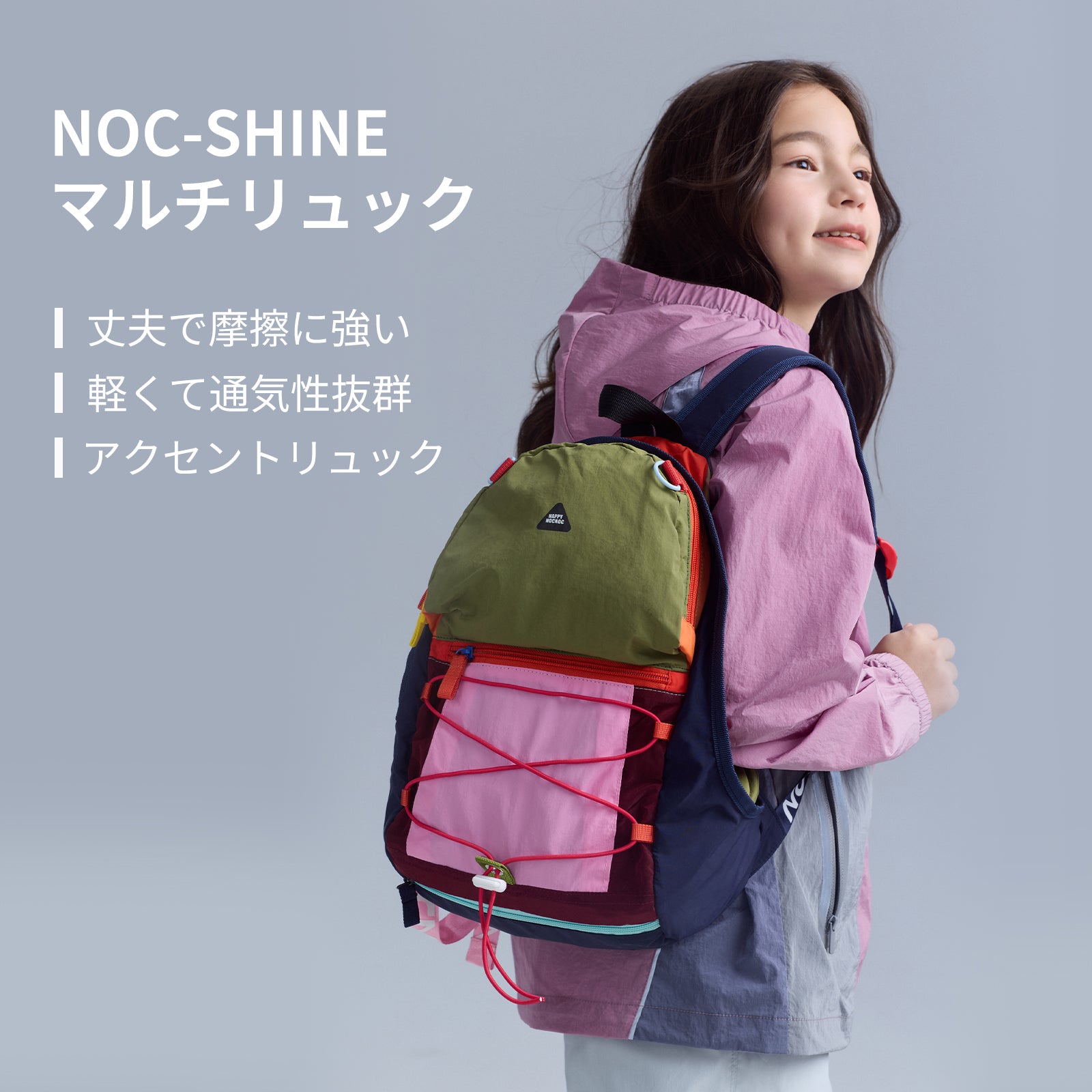 軽量で持ちやすく、荷物をしっかり入れられる大容量設計。 日常使いしやすさ、撥水性を備えたNOC-Shine素材を使うことで、通園・通学やお出かけはもちろん、外遊びやアウトドアにも対応可能。 複数のポケット付きで、荷物をすっきり整理しやすいのもポイント。子どもが毎日気負わず使える、機能性と実用性を兼ね備えたアイテム。