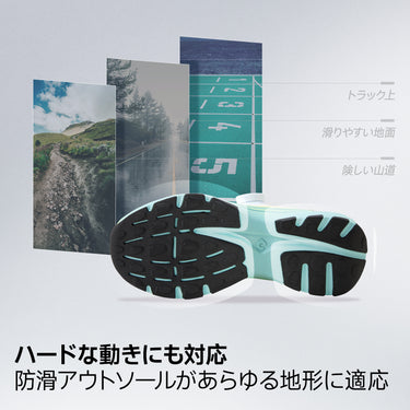 ランニング、縄跳び、あらゆる専門トレーニングから日常の通勤まで、多様なシーンでご活用いただけます。前後足底の高反発プレートと中間抗ねじれテクノロジーが推進力と安定性を高め、ハードな動きにもしっかりと対応。滑りにくいアウトソールで、あらゆる路面での動作をサポートます。