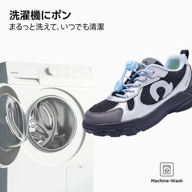 毎日の体育やお出かけに。軽量・クッション性・通気性でお子さまの足をやさしく支えます。洗濯機で丸洗いできるから、いつでも清潔。広めのつま先設計で成長期の足をしっかり守ります。