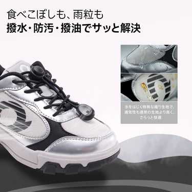 撥水・防汚・撥油の3WAYガードで、思いきり遊べる毎日をサポート。通気性の高い素材でムレにくく、丸洗いできるからお手入れもラク。お子さまの足を守り、パパやママにもうれしい安心設計です。