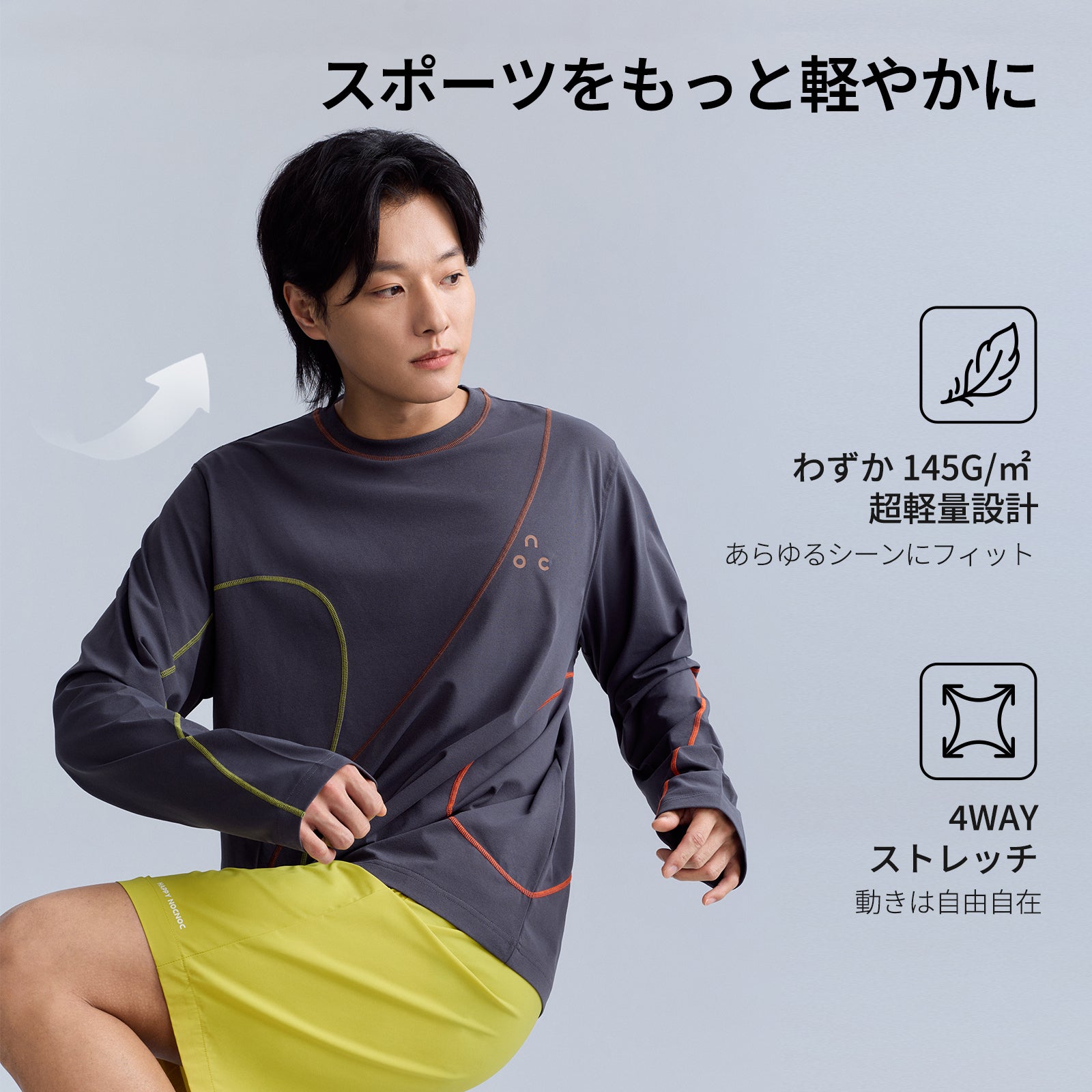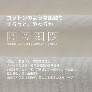 どんなシーンもこれ一枚でスマートに。優れた速乾性能と独自の「ポンプ構造」が、衣服内の蒸れやベタつきを瞬時に解消。植物由来のコットンライクな肌触りは、肌へのストレスを軽減し、145g/㎡の超軽量設計と4WAYストレッチが、どんな動きも妨げない洗練された着心地を実現。