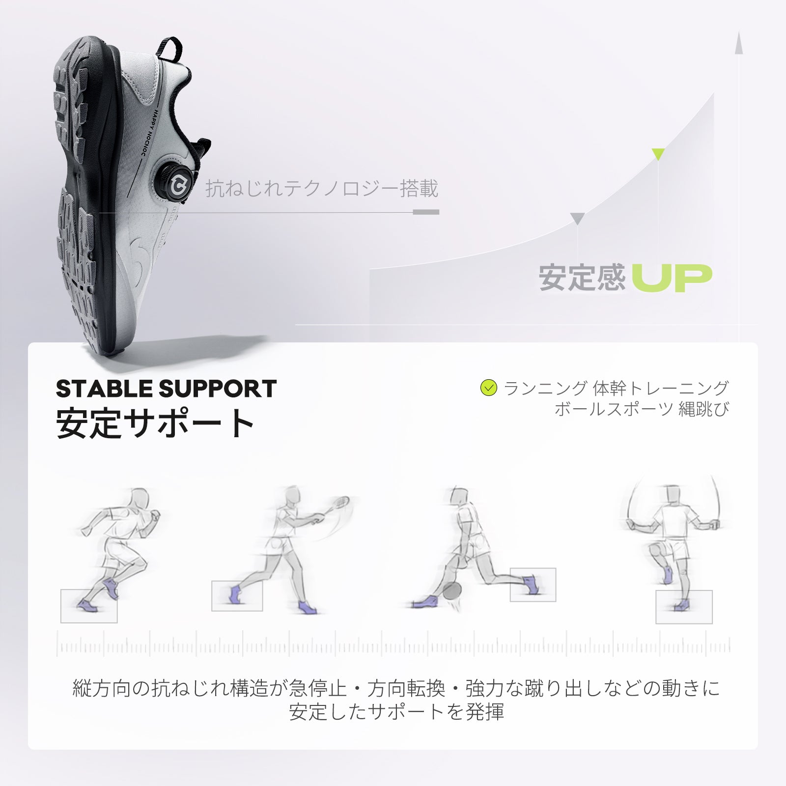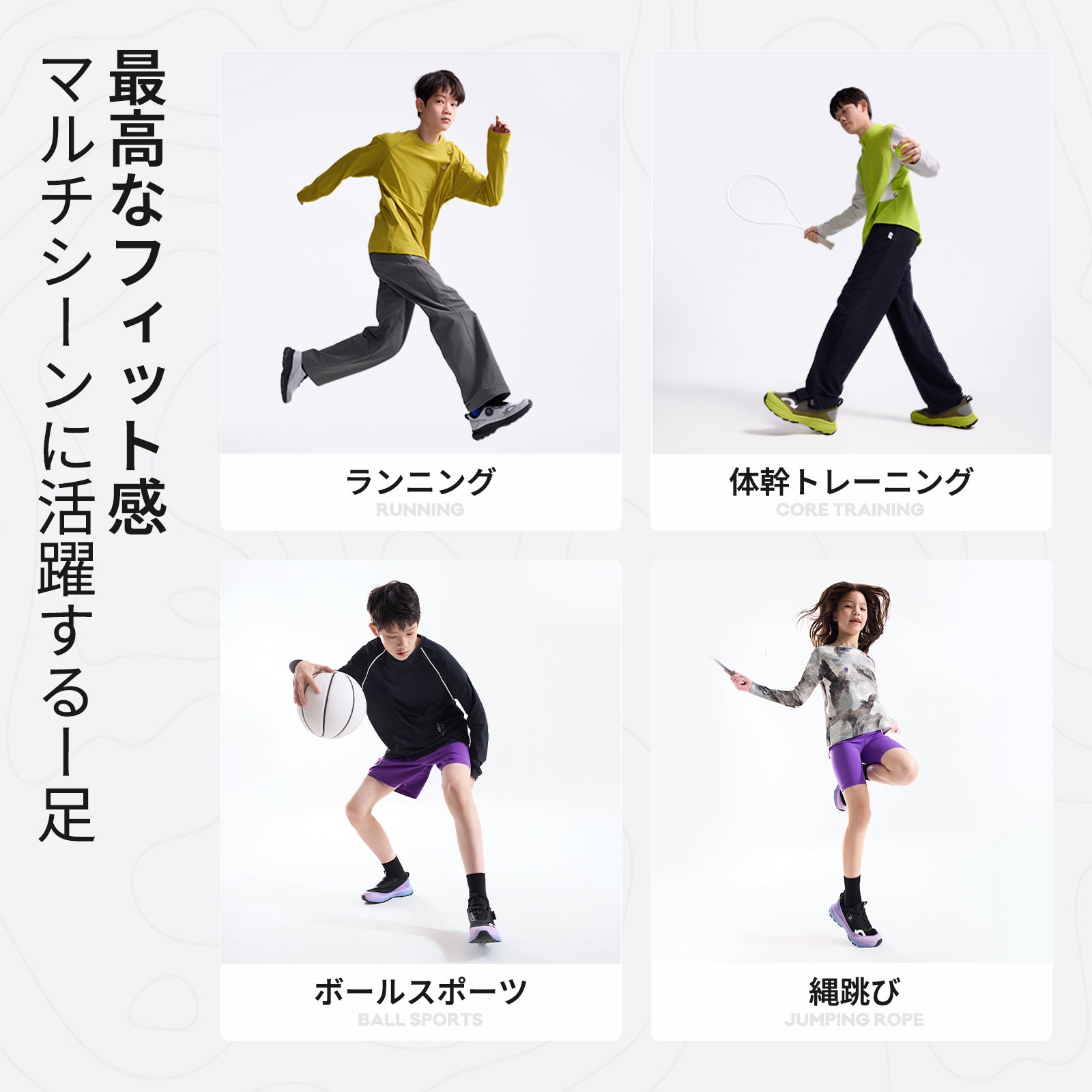 ランニング、縄跳び、あらゆる専門トレーニングから日常の通勤まで、多様なシーンでご活用いただけます。前後足底の高反発プレートと中間抗ねじれテクノロジーが推進力と安定性を高め、ハードな動きにもしっかりと対応。滑りにくいアウトソールで、あらゆる路面での動作をサポートます。