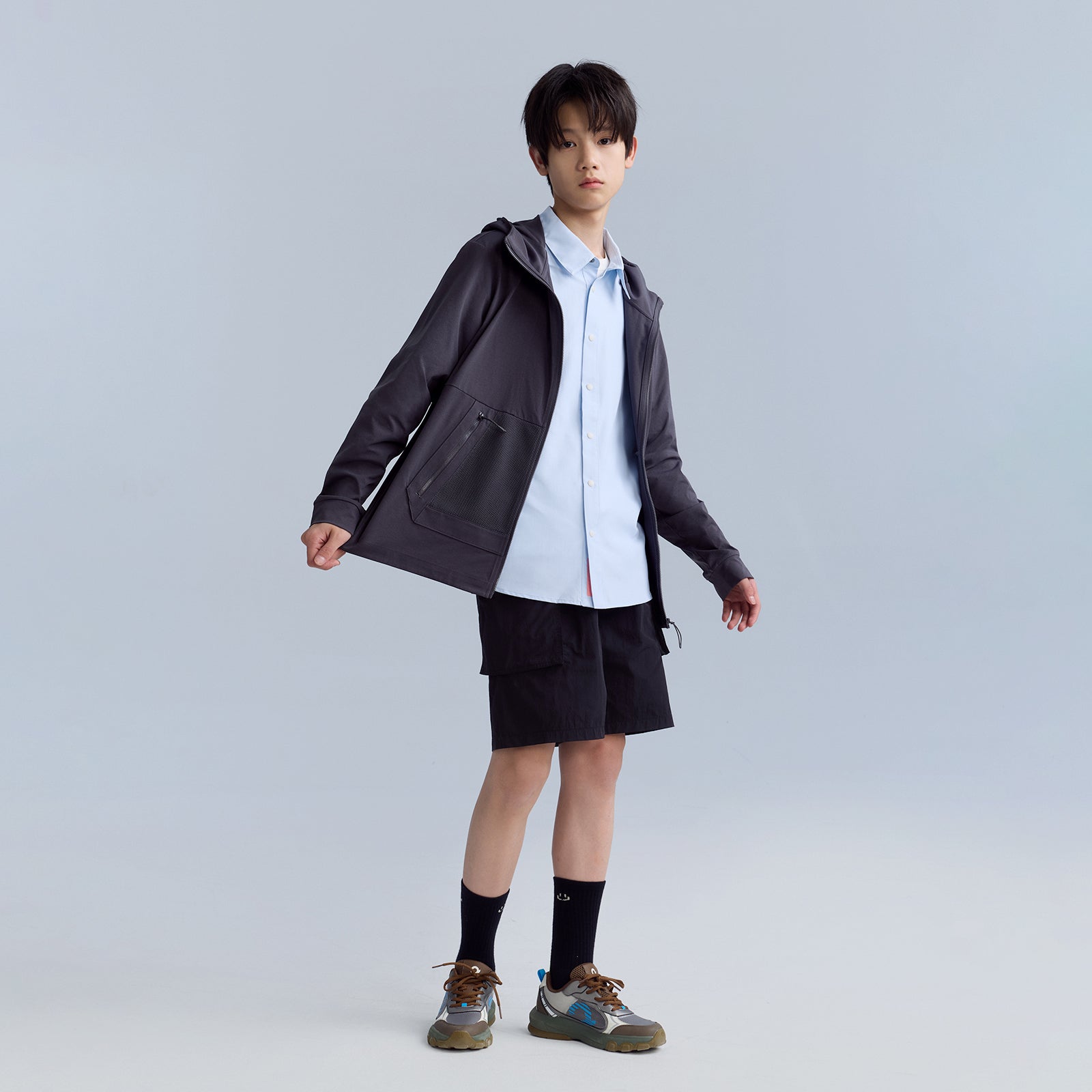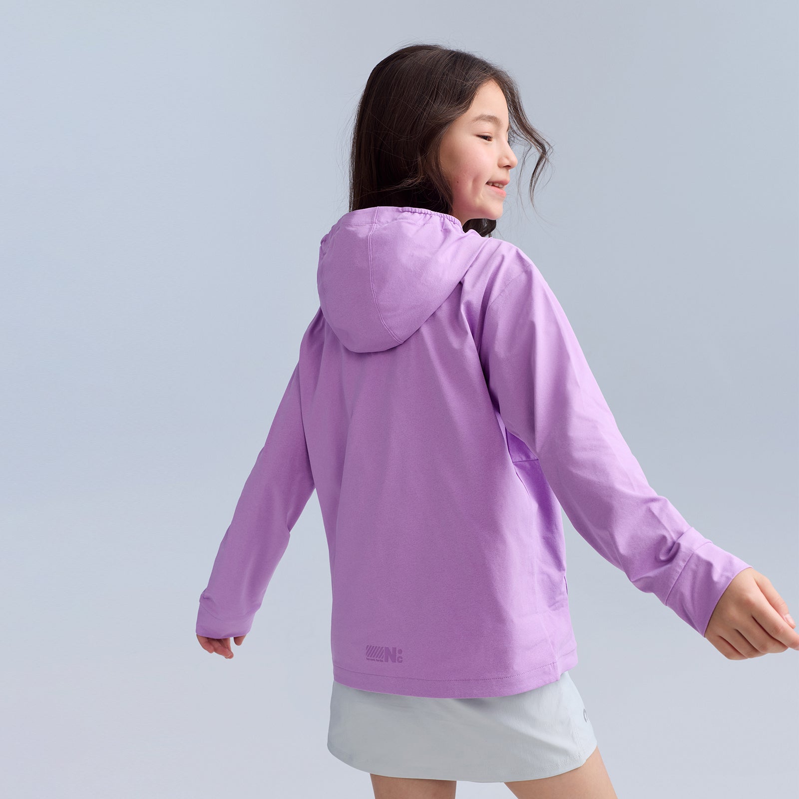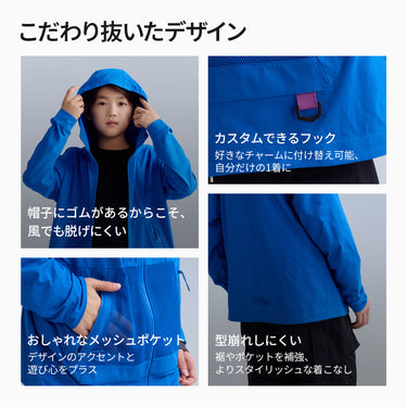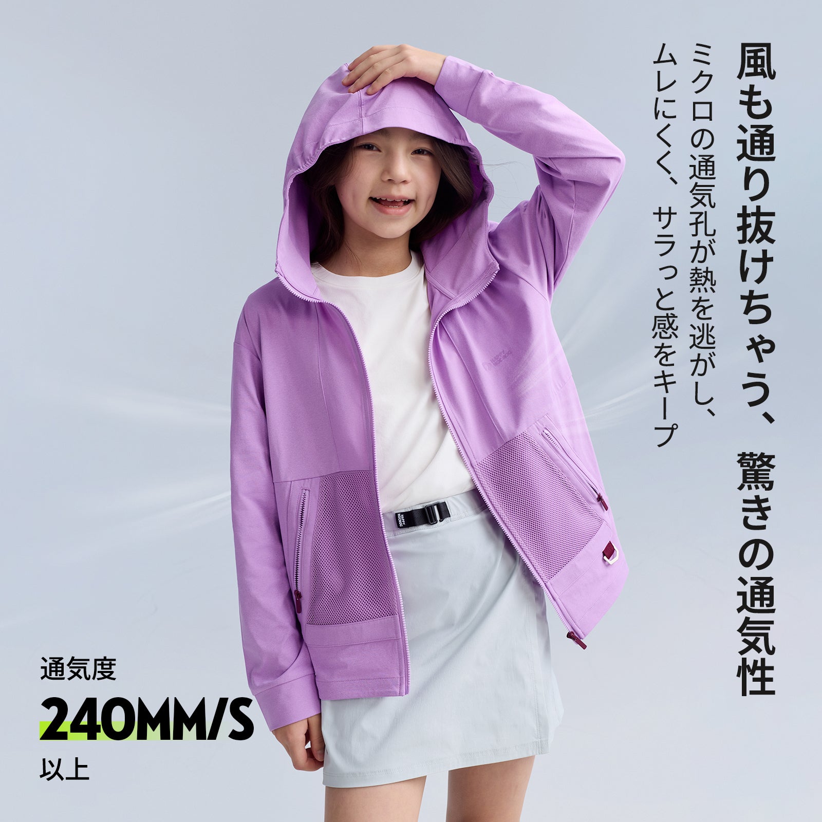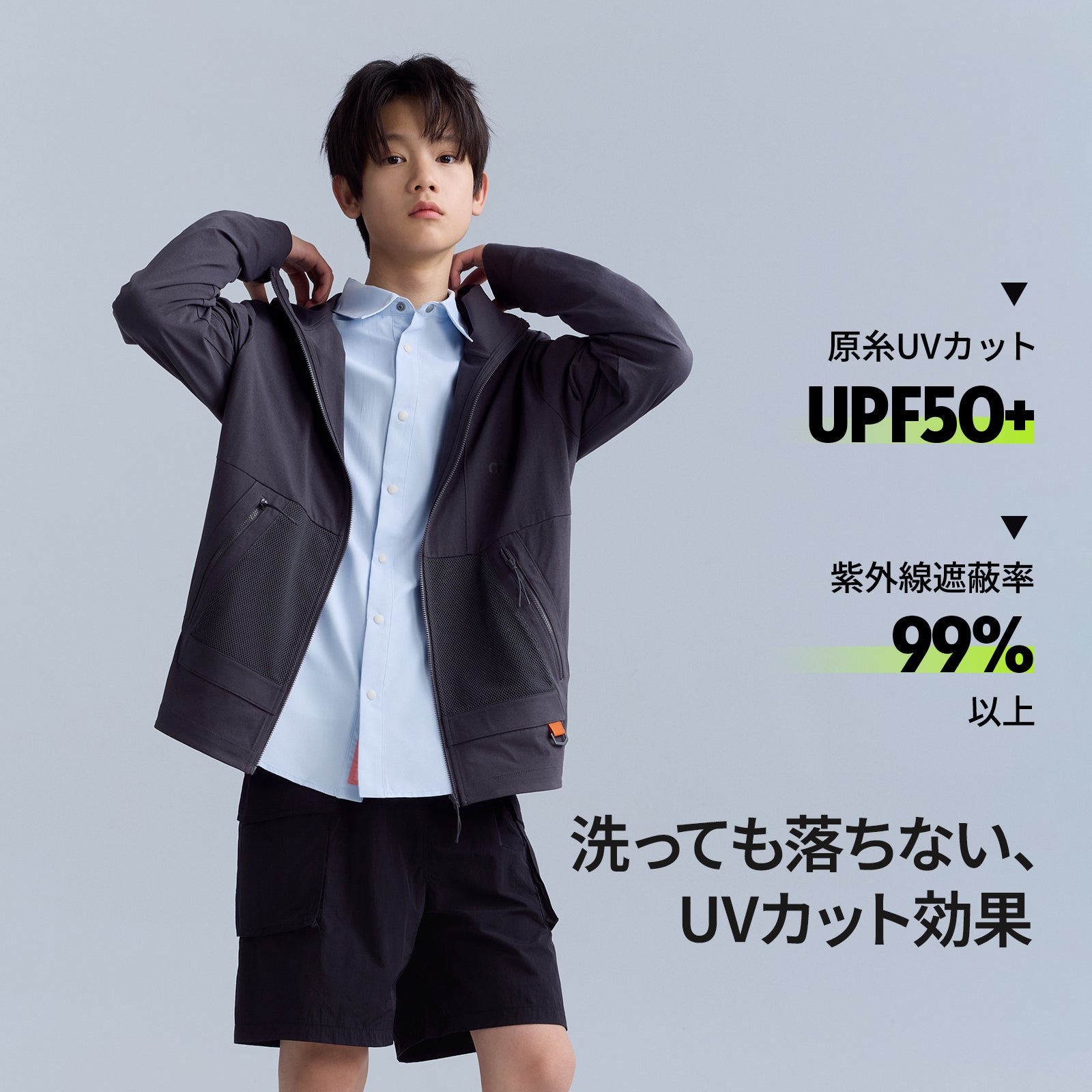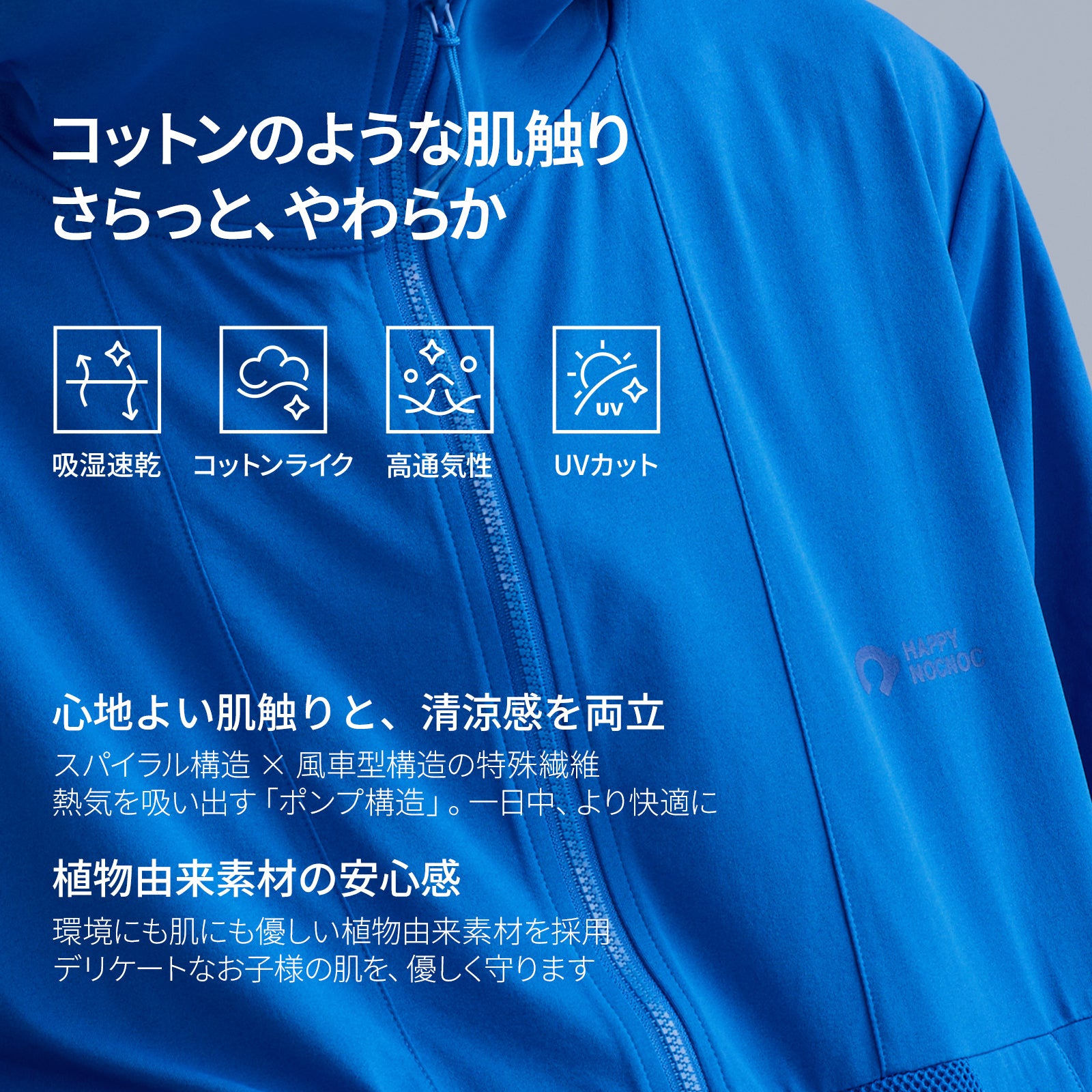 日常の公園遊びから、夏のアウトドア・水遊びまで。 コットンのような優しい肌触りでありながら、最新の「吸湿速乾テクノロジー」を備えたハイテク素材を採用。 強い日差しから肌を守るUVカット機能と、ムレを能動的に逃がす通気性が両立。 スパイラル構造 × 風車型構造の特殊繊維が汗を素早く吸い上げ、常にサラサラの着心地をキープする、春夏の必須アイテム。